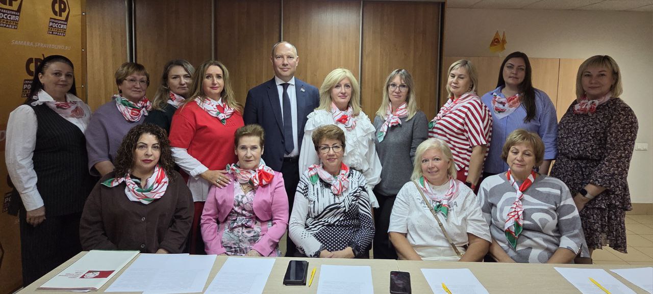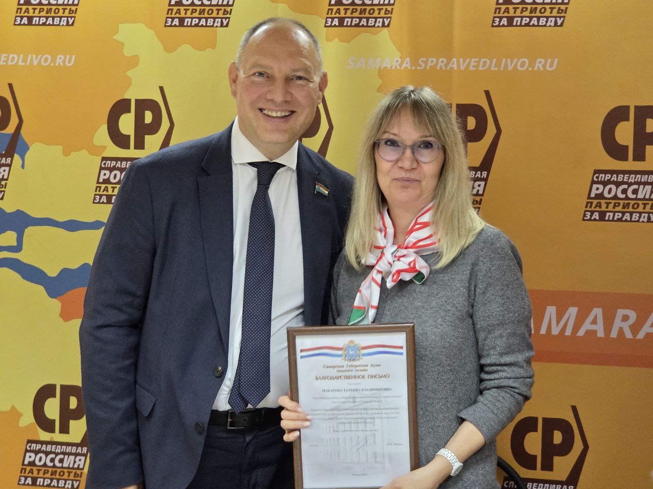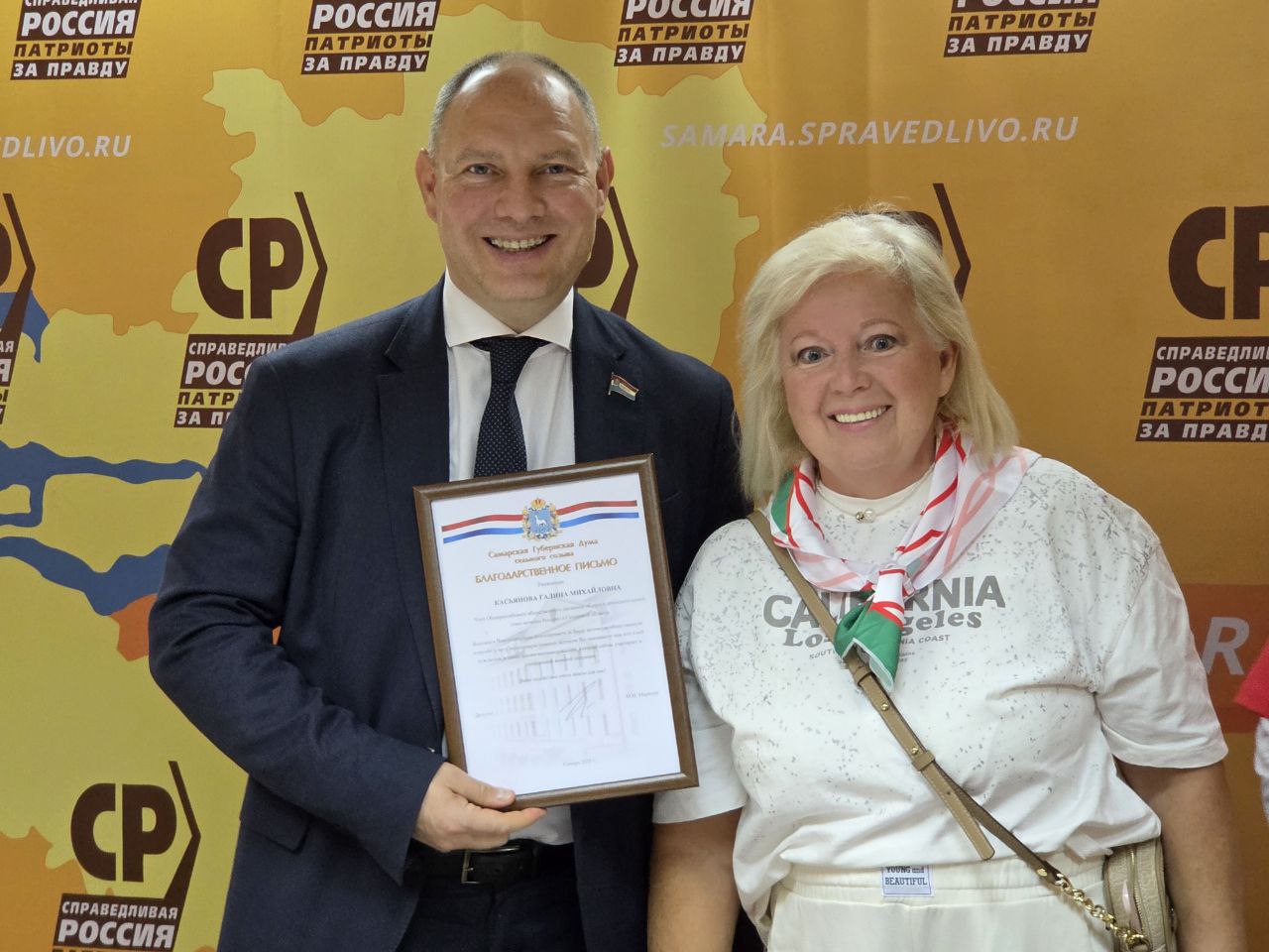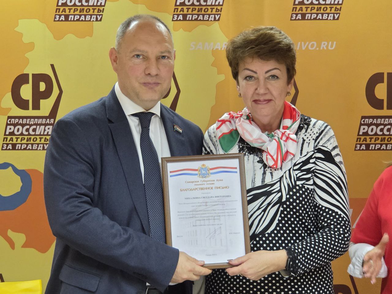В собрании принял участите Михаил Маряхин, руководитель фракции СПРАВЕДЛИВАЯ РОССИЯ – ЗА ПРАВДУ в Самарской Губернской Думе и от своего имени вручил благодарственные письма особенно активным: за помощь участникам СВО и их семьям, за вклад в развитие детско-юношеского творчества, за образовательные программы и поддержку незащищенных слоёв населения.