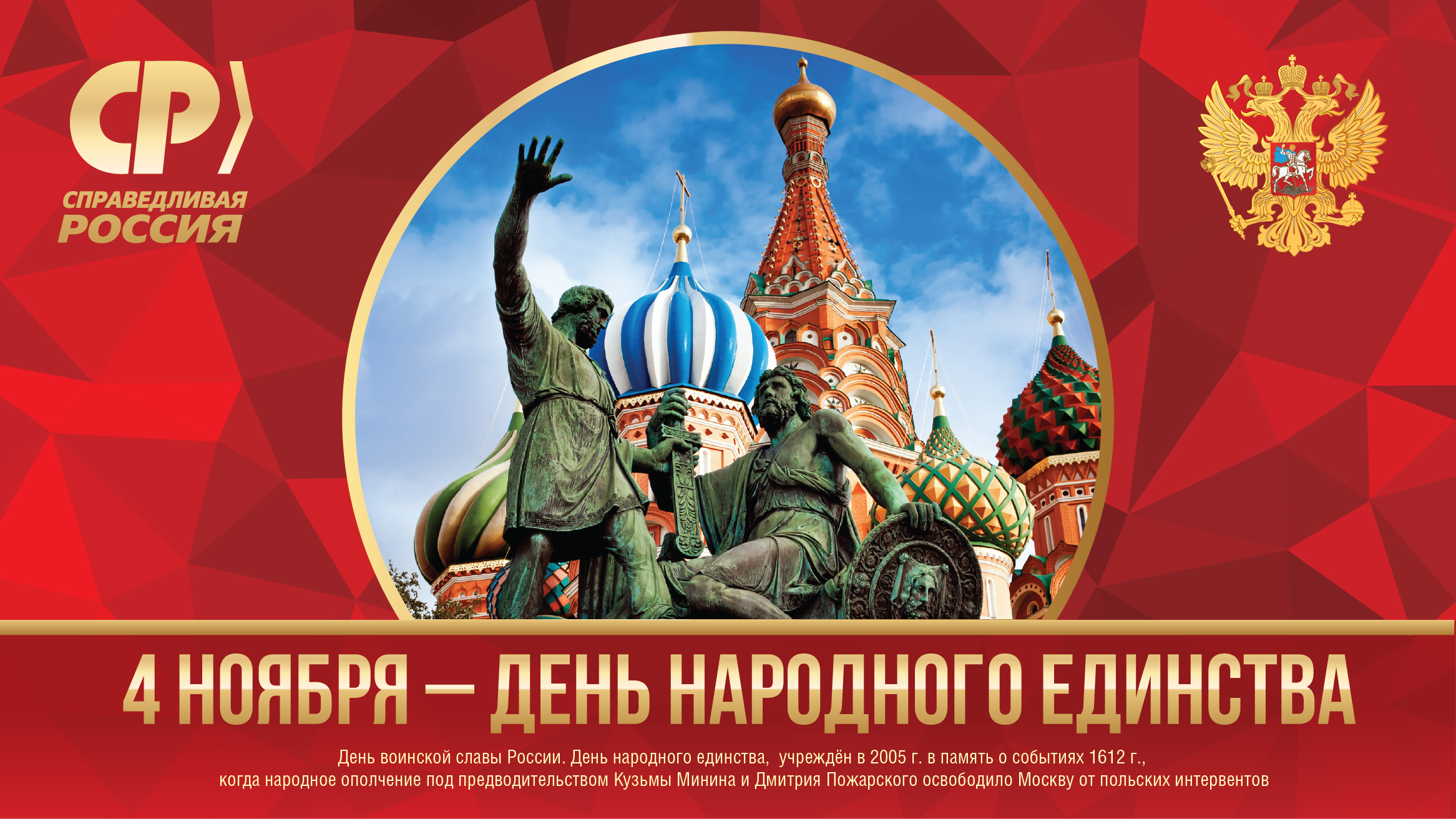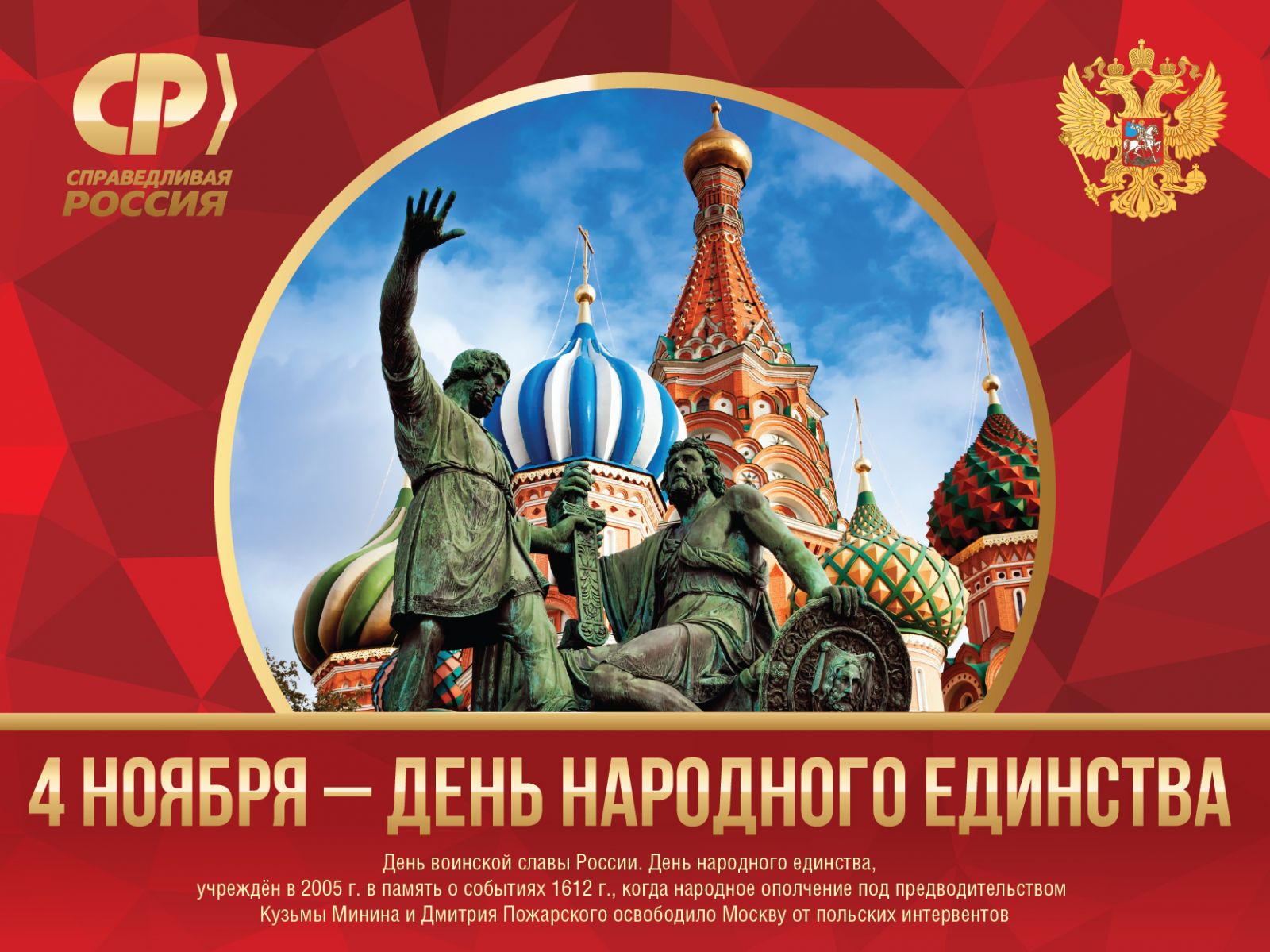 4 ноября 1612 года благодаря единению, мужеству и самоотверженности наш народ одержал победу над иноземными захватчиками. И сегодня любовь к Родине, память о великой истории народов России, дань традициям, сплочённость и готовность ценой своей жизни защитить Отечество даёт нам силы противостоять любым внешним вызовам и угрозам. ⠀