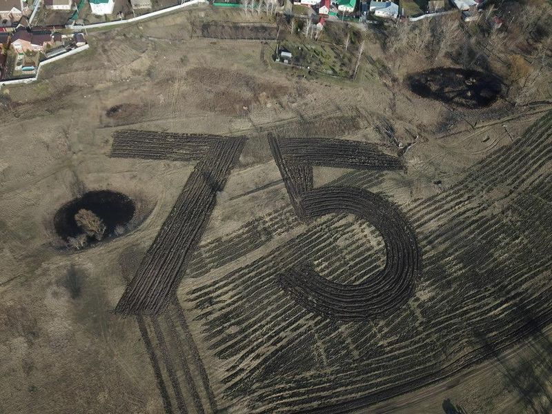 23 апреля 2020 года Красноярском районе Самарской области в честь юбилея Победы в Великой Отечественной войне из саженцев сосны посадили геоглиф "75". Тогда силами лесничества было высажено 5 тысяч штук сеянцев двух- и трёхлетней сосны на площади 0,8 гектаров. Борозды были нарезаны в форме цифры 75, её высота составила 100 метров, а ширина – 20 метров. К сожалению, не все деревья принялись, поэтому решено было восстановить пробелы в надписи.