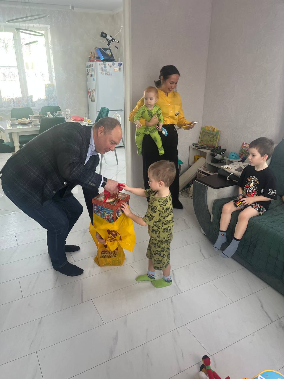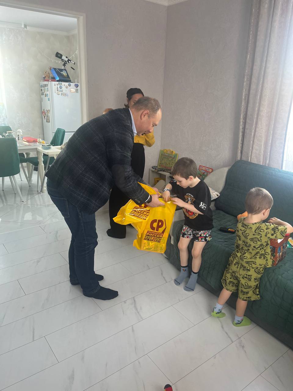 По поручению Сергея Михайловича председатель Совета Самарского реготделения Партии СПРАВЕДЛИВАЯ РОССИЯ Михаил Маряхин приехал в посёлок Кинельский и вручил ребятам подарки. В коробках сладости и игры по возрасту. Малыши были очень довольны! Настоящий сюрприз для всей семьи.⠀