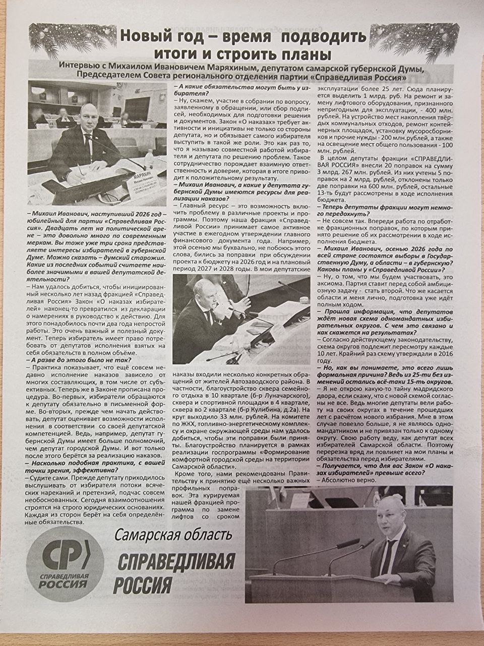 • Большое развёрнутое интервью с Председателем Совета Самарского реготделения Партии СПРАВЕДЛИВАЯ РОССИЯ Михаилом Маряхиным о планах на 2026 год, о законодательных инициативах и работе реготделения.