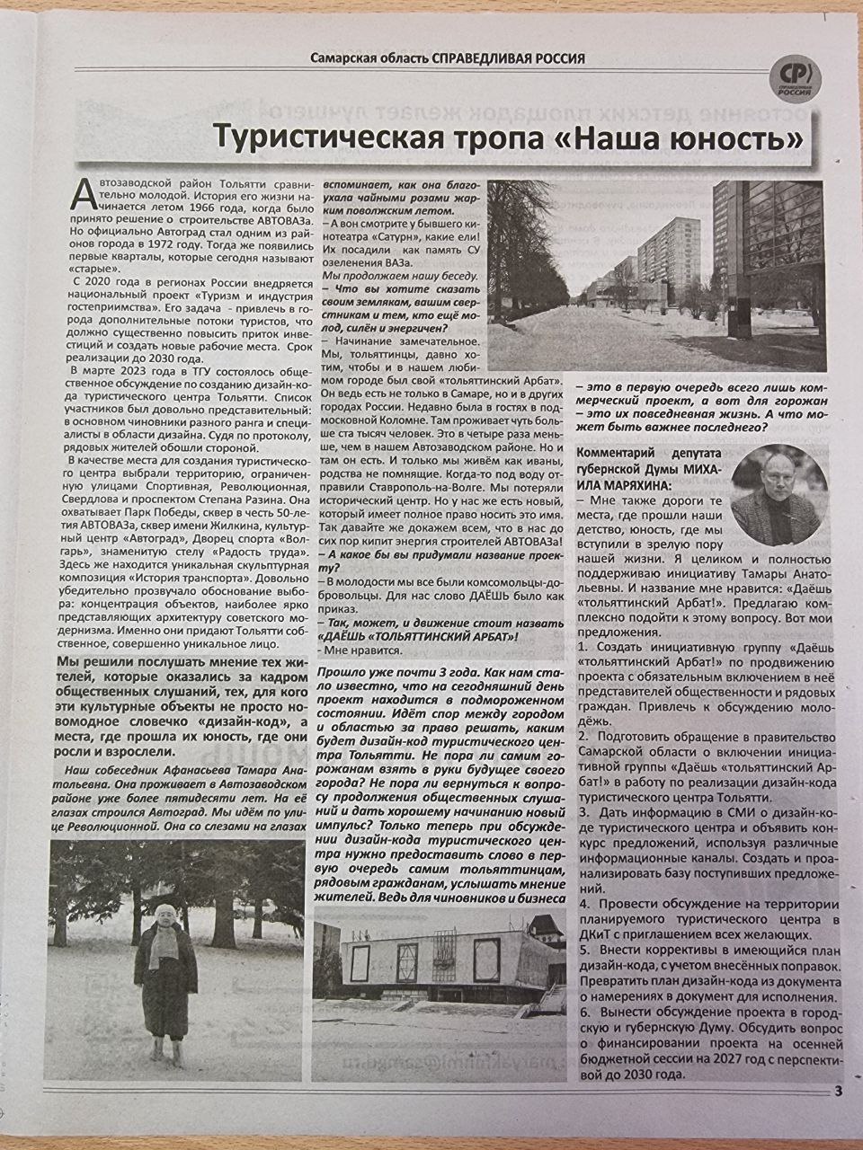 • "Туристическая тропа" – доверительный разговор об истории Тольятти, днях прошедших и настоящих. О новом для нас всех проекте "Даёшь тольяттинский Арбат!".