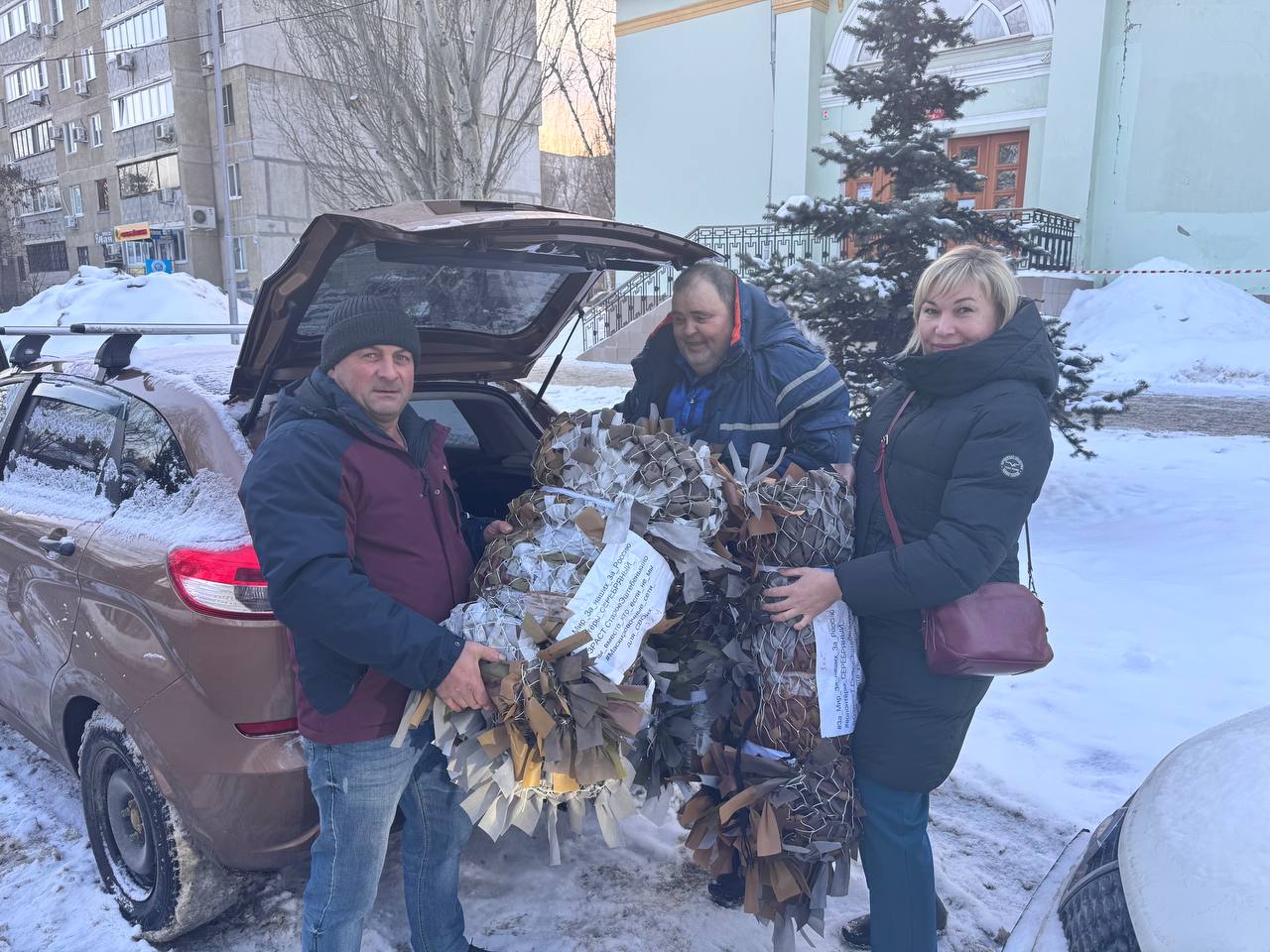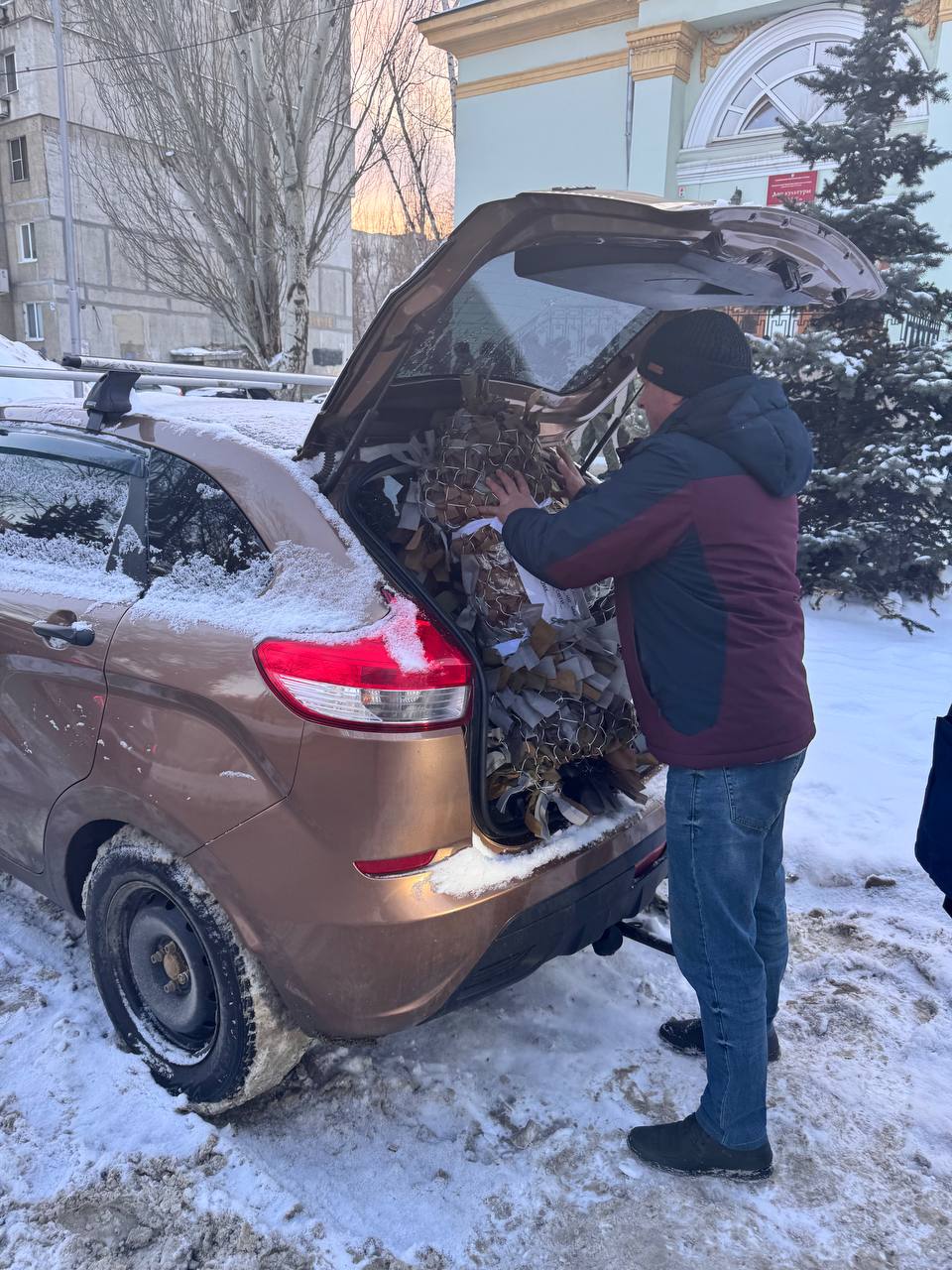 От волонтеров на днях получили изготовленные маскировочные сети для блиндажей и орудий. С ближайшим гуманитарным грузом будем переправлять их бойцам в зону СВО. На фронте сети – расходный материал, поэтому всегда нужны в большом количестве. Военные каждый раз с благодарностью принимаю их.