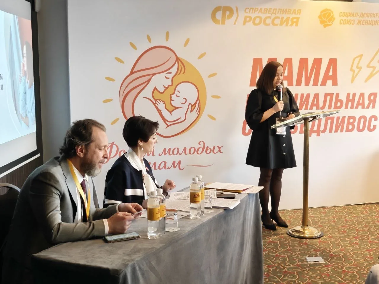 14 марта в Москве состоялся первый всероссийский Форум молодых мам, организованный Партией СПРАВЕДЛИВАЯ РОССИЯ и Социал-демократическим союзом женщин России (СДСЖР). Участники из разных уголков России собрались вместе, чтобы обсудить проблемы материнства. От Самарского регионального отделения Партии СПРАВЕДЛИВАЯ РОССИЯ в форуме приняла участие мама троих детей из Кинеля Мария Анатольевна Юдина. На одной из тематических секций форума она выступила с презентацией о занятости мам "Напелёнки.ру".
